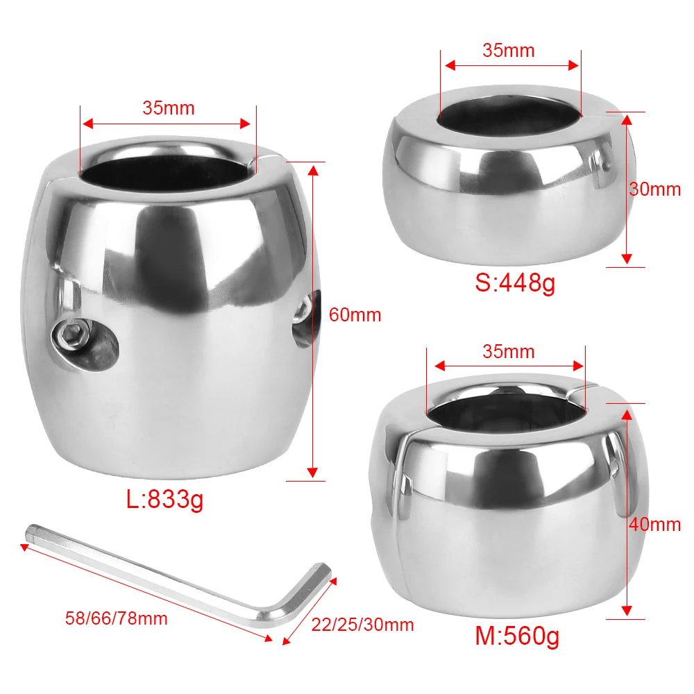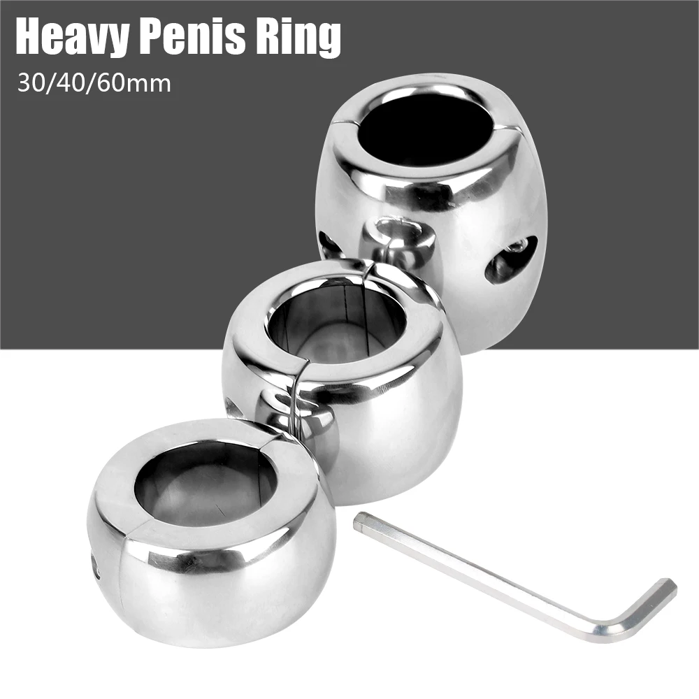 448-833g Heavy Stainless Steel 30-60mm Penis Ring for Men Cock Exerciser Scrotum Lock Testis Stretcher Sex Toys Male Masturbator