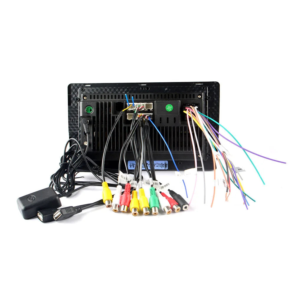 The standard accessories are: 1 9-inch Android radio + 2 USB extension cords + RCA interface connector + GPS antenna + rear view interface RCA + universal power connection cable.