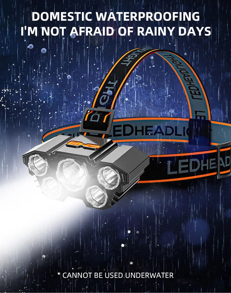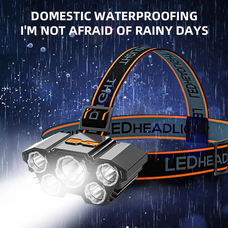 5 LED Headlamp Rechargeable with Built in 18650 Battery Strong Light Headlight Camping Adventure Fishing Head Light Flashlight