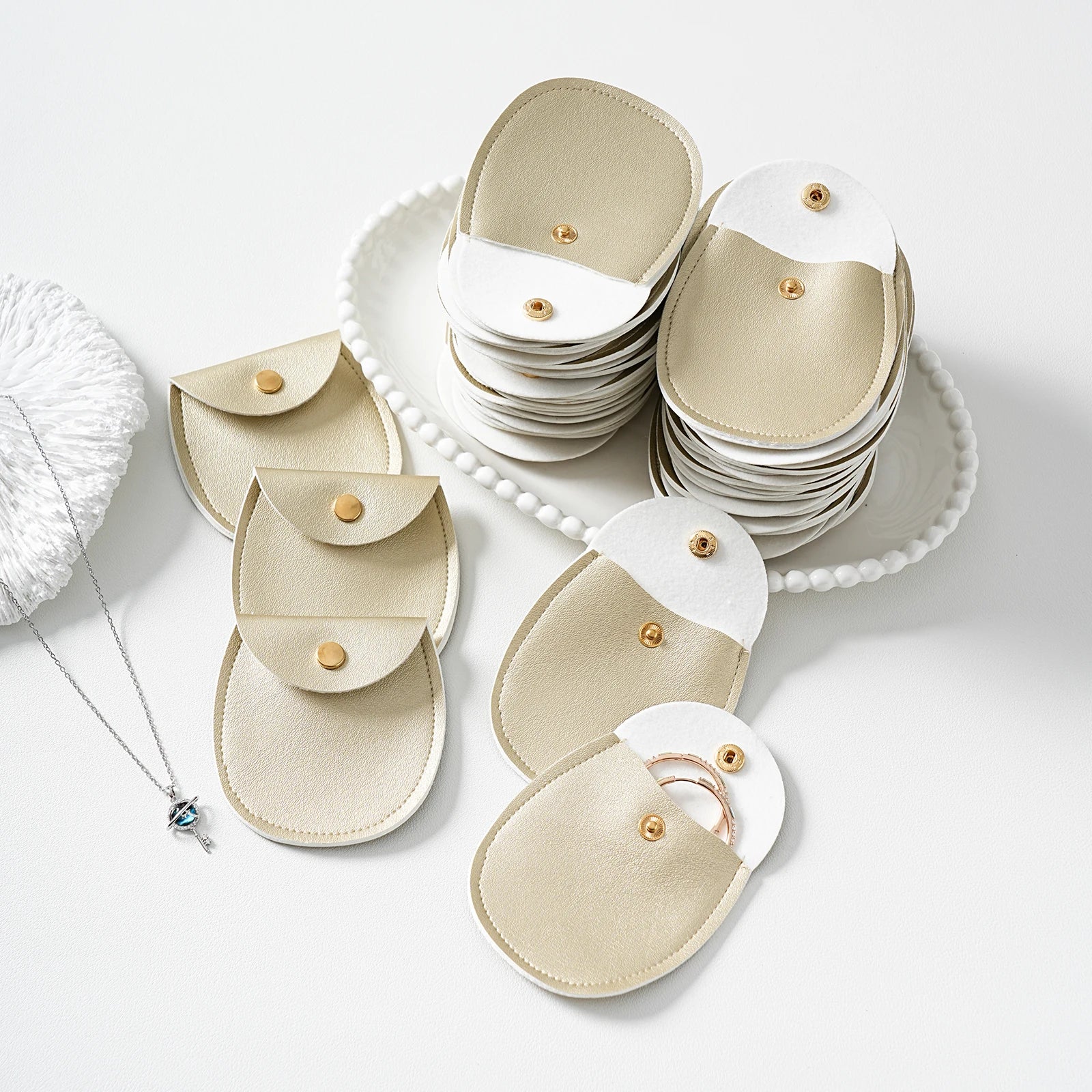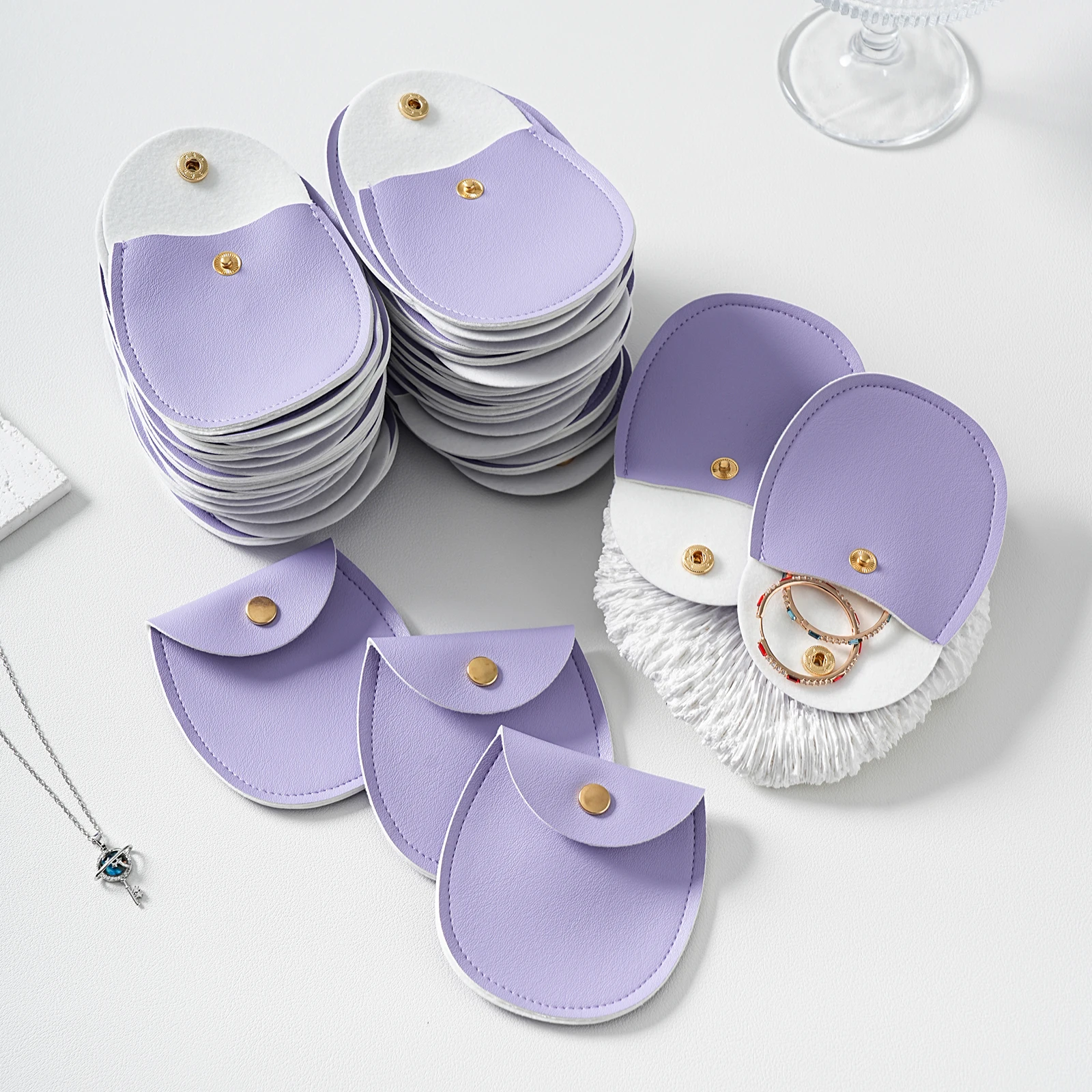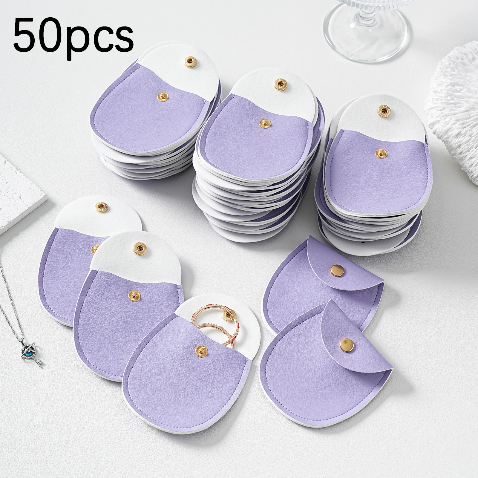 50Pcs Bulk Purple PU Leather Gold Button Snap Pouch Wedding Earring Ring Storage Party Gift Display Travel Packaging Bags