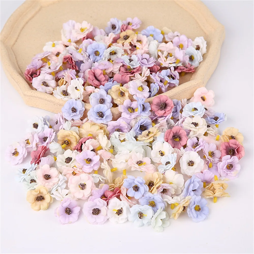 50PCs Mini Artificial Rose Flowers Heads Silk Fake Flowers for Home Dceor Wedding Decoration Craft Wreath Gifts Accessories