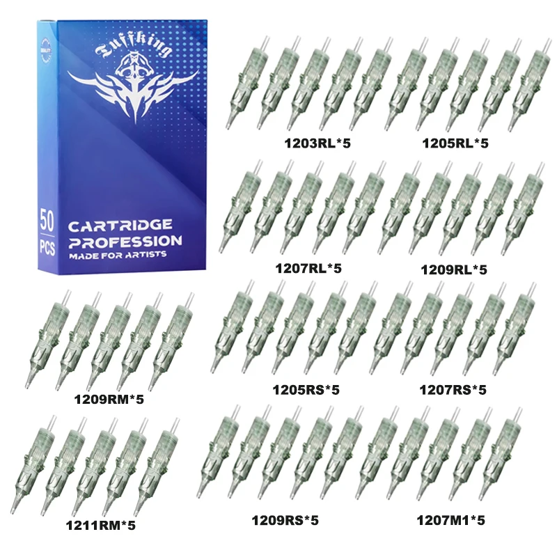 50pcs Sterilized Safety Tattoo Needle Cartridge RL/RS/RM/M1 Disposable Membrane Makeup Permanent Tattoo Needle For Tattoo Gun
