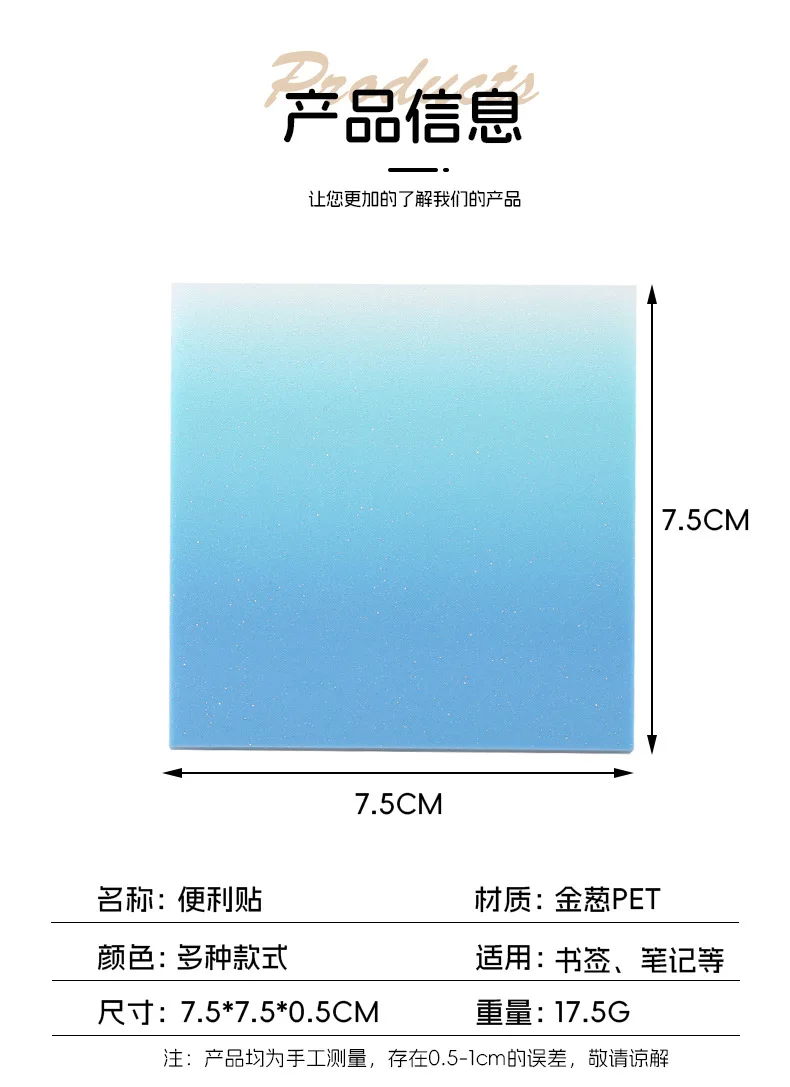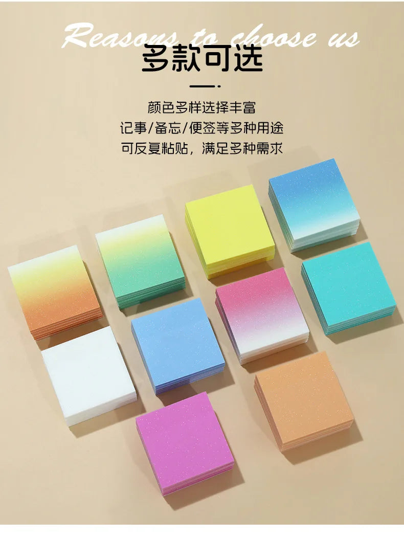 50Sheets Gradient Color Glitter Sticky Notes N times sticker PET Waterproof Memo pad Notepad School Stationery Office Supplies