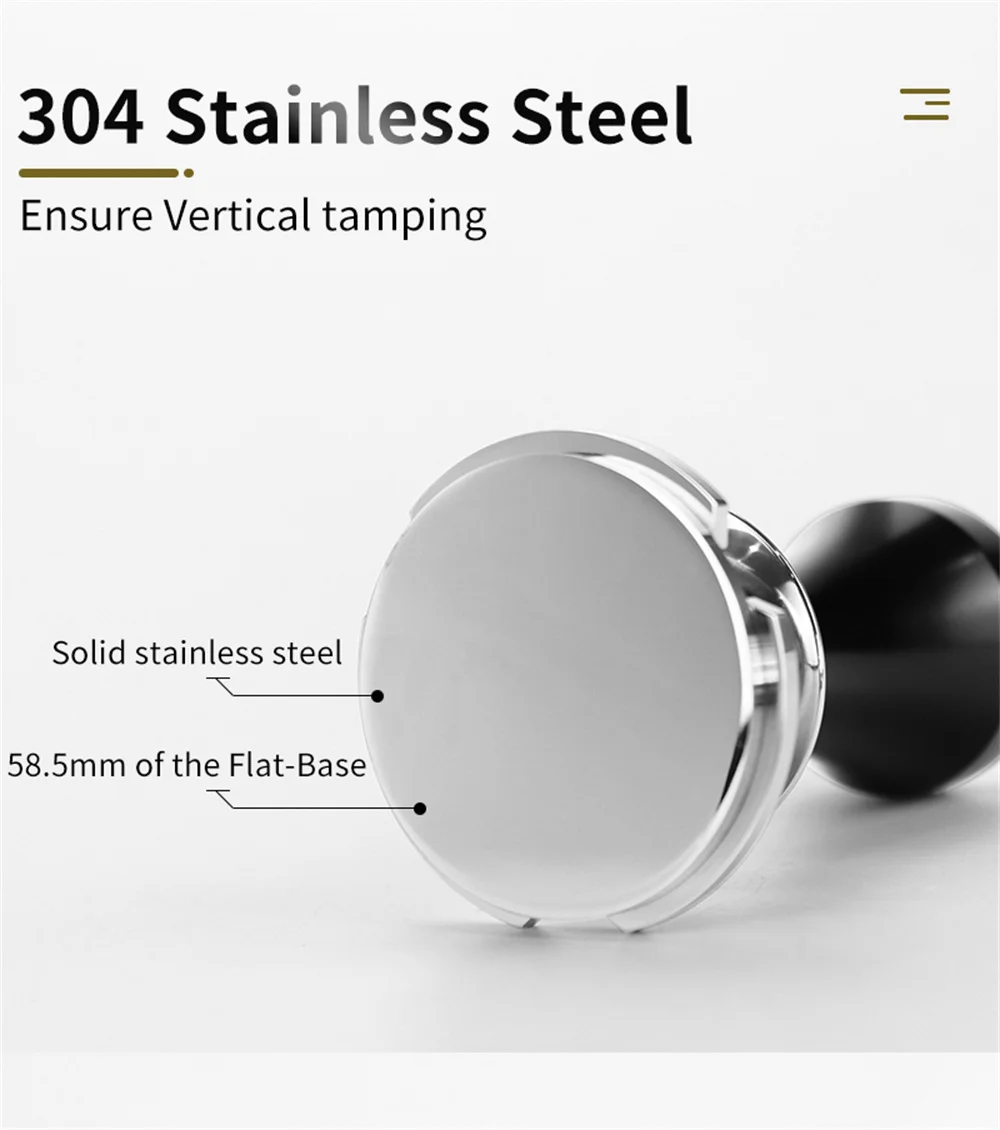 51mm 53mm 58mm Espresso Coffee Tamper Stainless Steel Flat/Thread Base Internal Spring Design Balanced Fixed Force Coffee Tamper