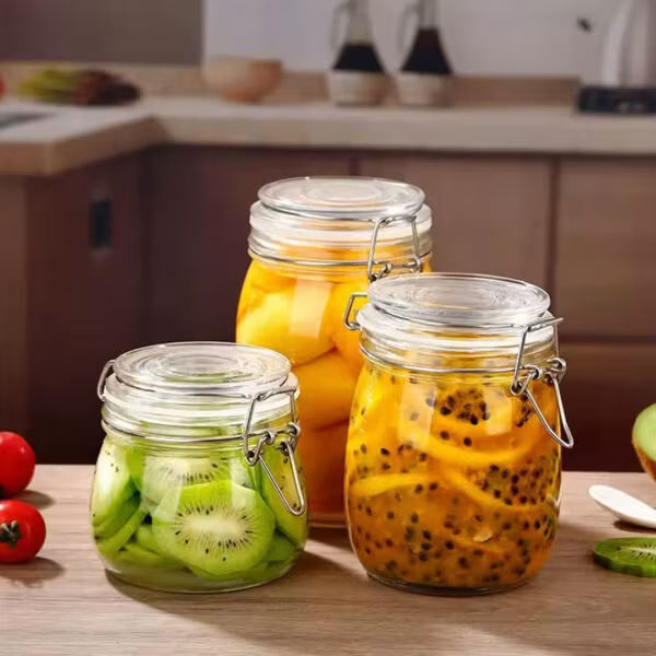 Keep your pantry essentials fresh and your counters organized with this sleek, clear airtight glass jar. Each jar is equipped with a durable metal clip that ensures a secure seal, protecting the contents from moisture and air. Perfect for a variety of kitchen staples like dried fruits, nuts, spices, and even your favorite pickles or preserved fruits.