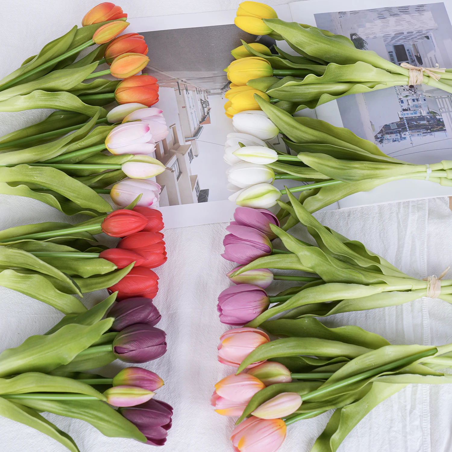 5pcs Artificial Tulip Bouquet Silicone Fake Flowers Party Decoration Living Room Table Centerpiece Floral Arrangement Decoration