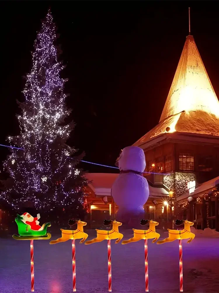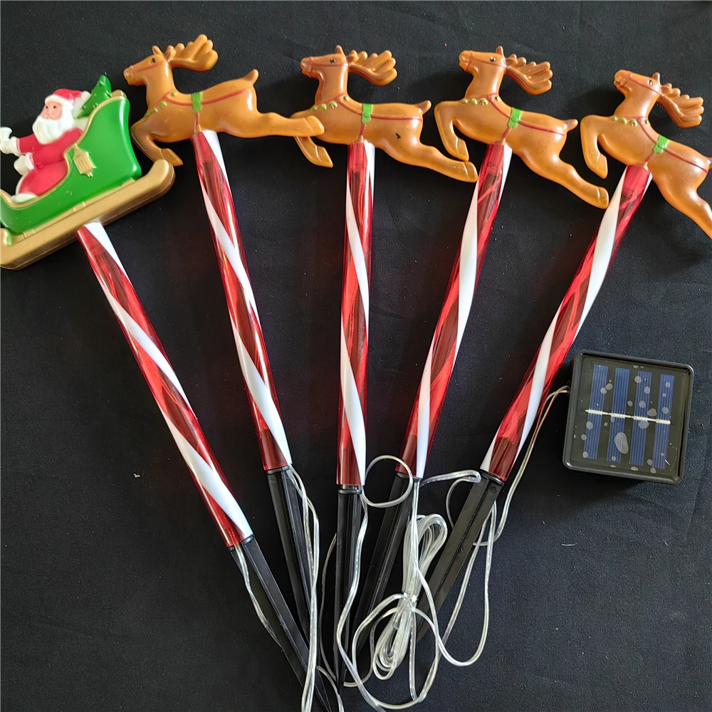 5pcs Solar LED Christmas Lights Set Santa Reindeer Design for Outdoor Patio Garden Lawn Decor Holiday Lights Waterproof 136