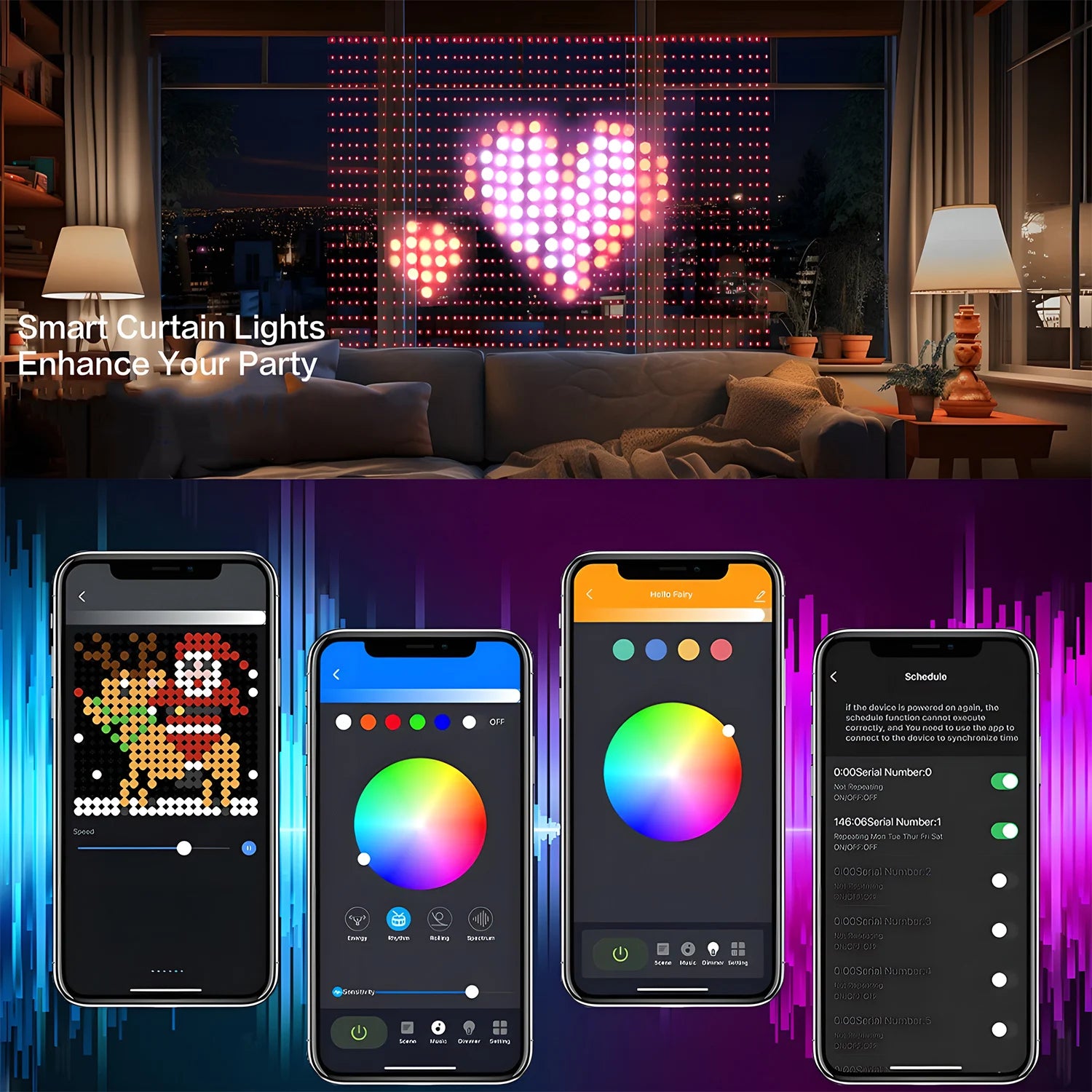 .400 LEDs :This smart curtain lights is equipped with 400 LEDs, providing a vibrant and festive atmosphere for your holiday decor.