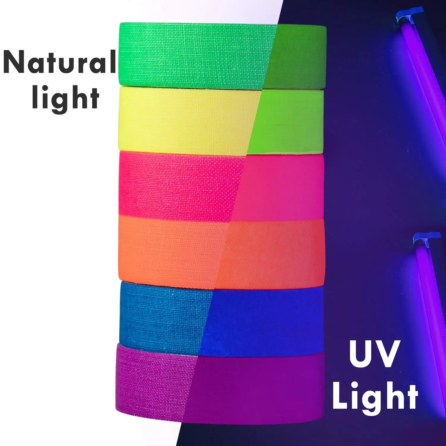 6 Rolls Neon Gaffer Cloth Tape Fluorescent UV Blacklight Glow In The Dark Tape For UV Party Material Hand Account Tape Gift Pack
