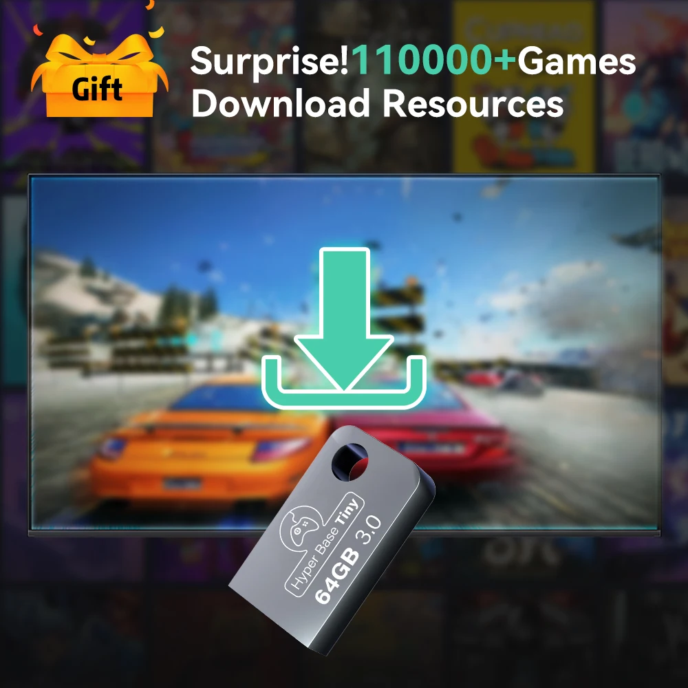 This retro game console has 64GB memory and built-in 8300+ retro games, plug and play, say goodbye to boring downtime and hello to endless hours of entertainment.