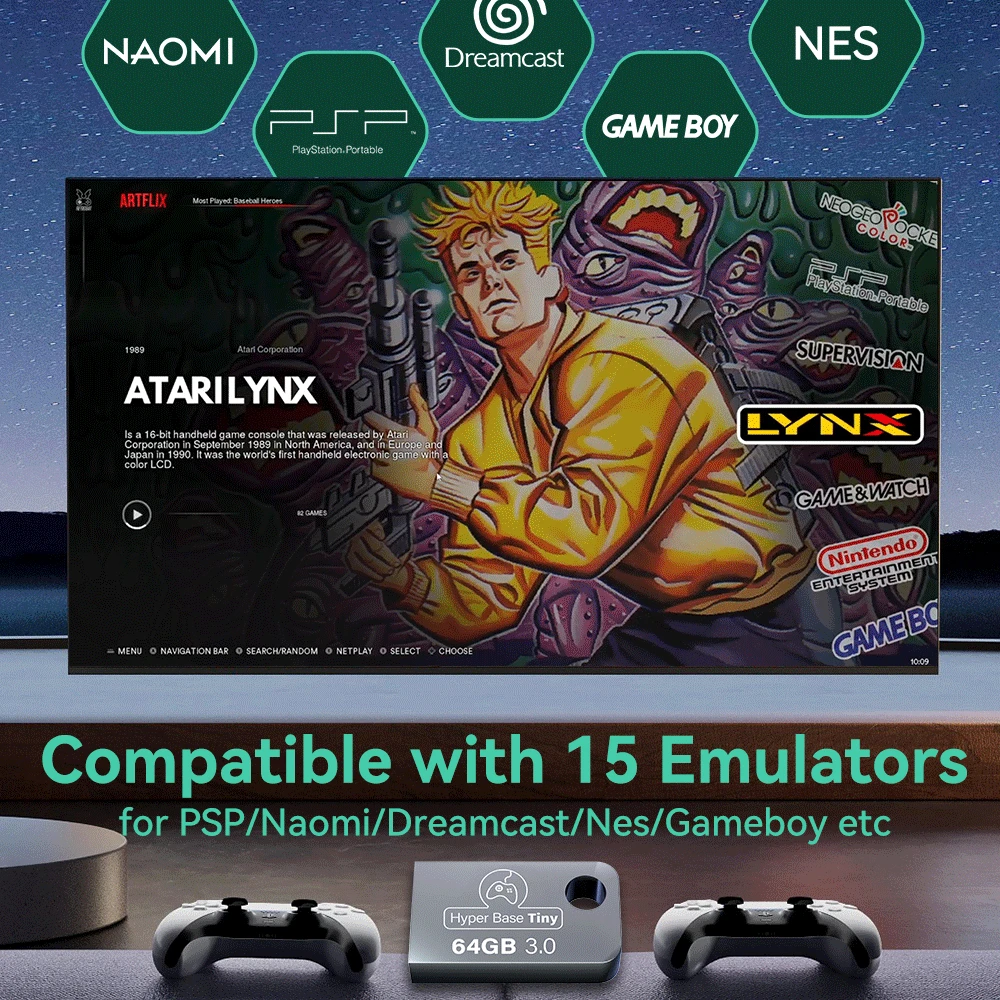 Pre-installed 15 retro game emulators for PSP/Naomi/Gameboy/Dreamcast/DS, you can relive your favorite classic games from the past on your modern system.