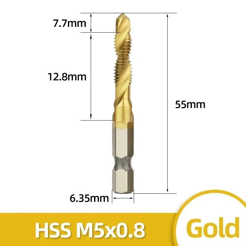 Material: Hex Shank Titanium Plated HSS Screw Thread Metric Tap