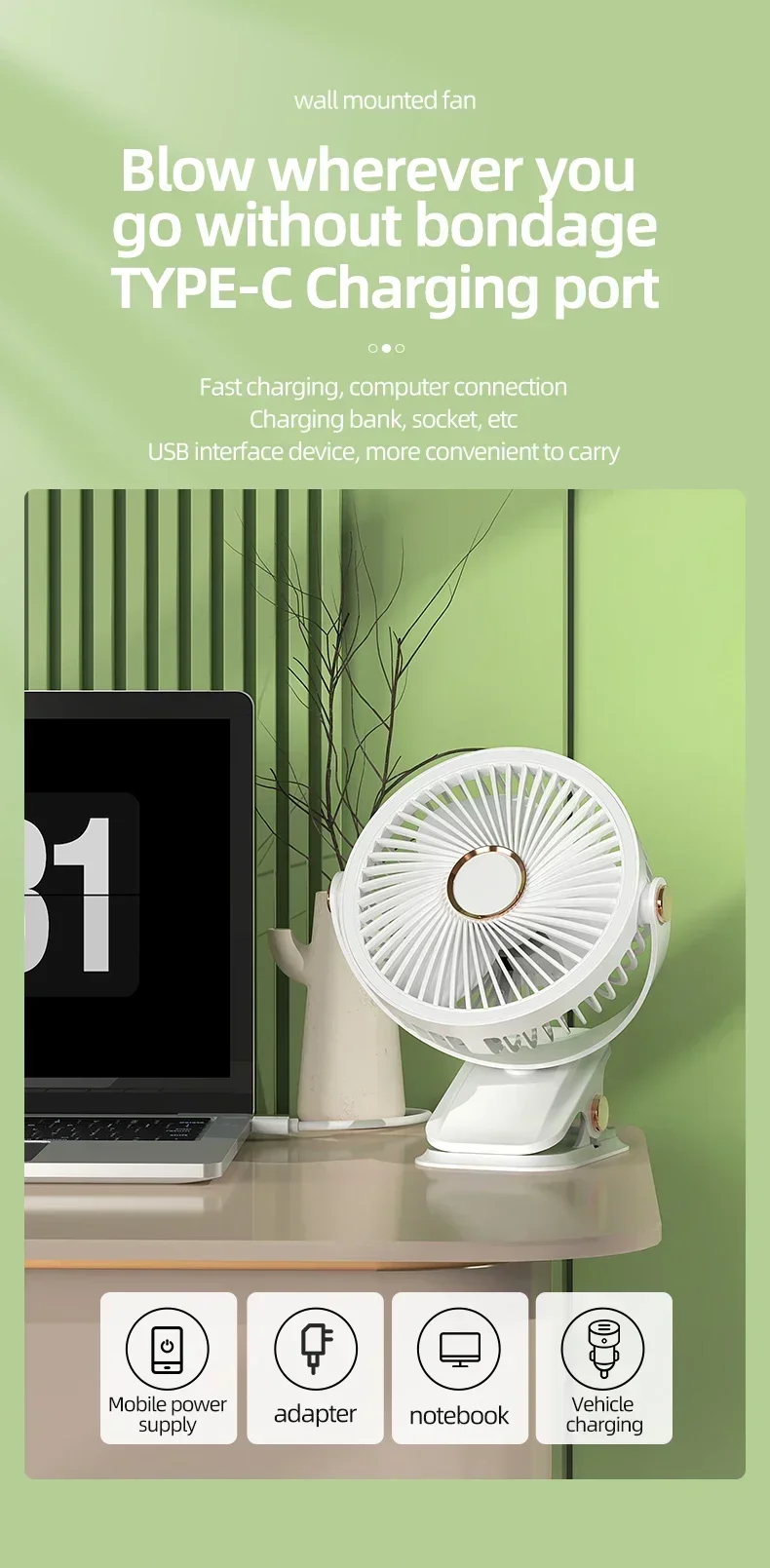 Mini Clip Fan Quiet Desktop Electric Fan USB Rechargeable Student Portable Desktop Camping Small Cooling Ventilador Fans
