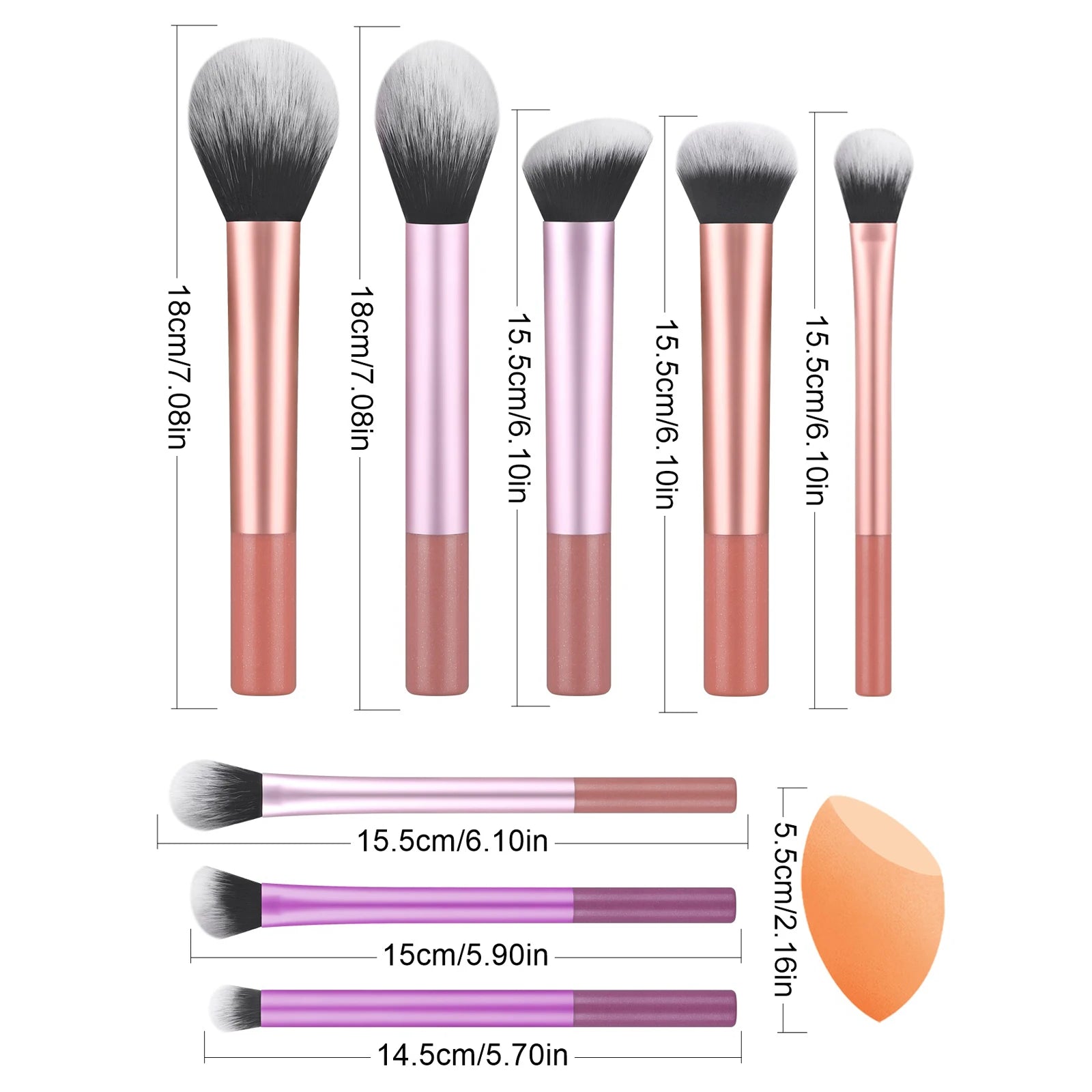 8PCS classic daily makeup brush set &1PC large wet and dry dual-use beveled beauty egg - suitable for daily facial makeup