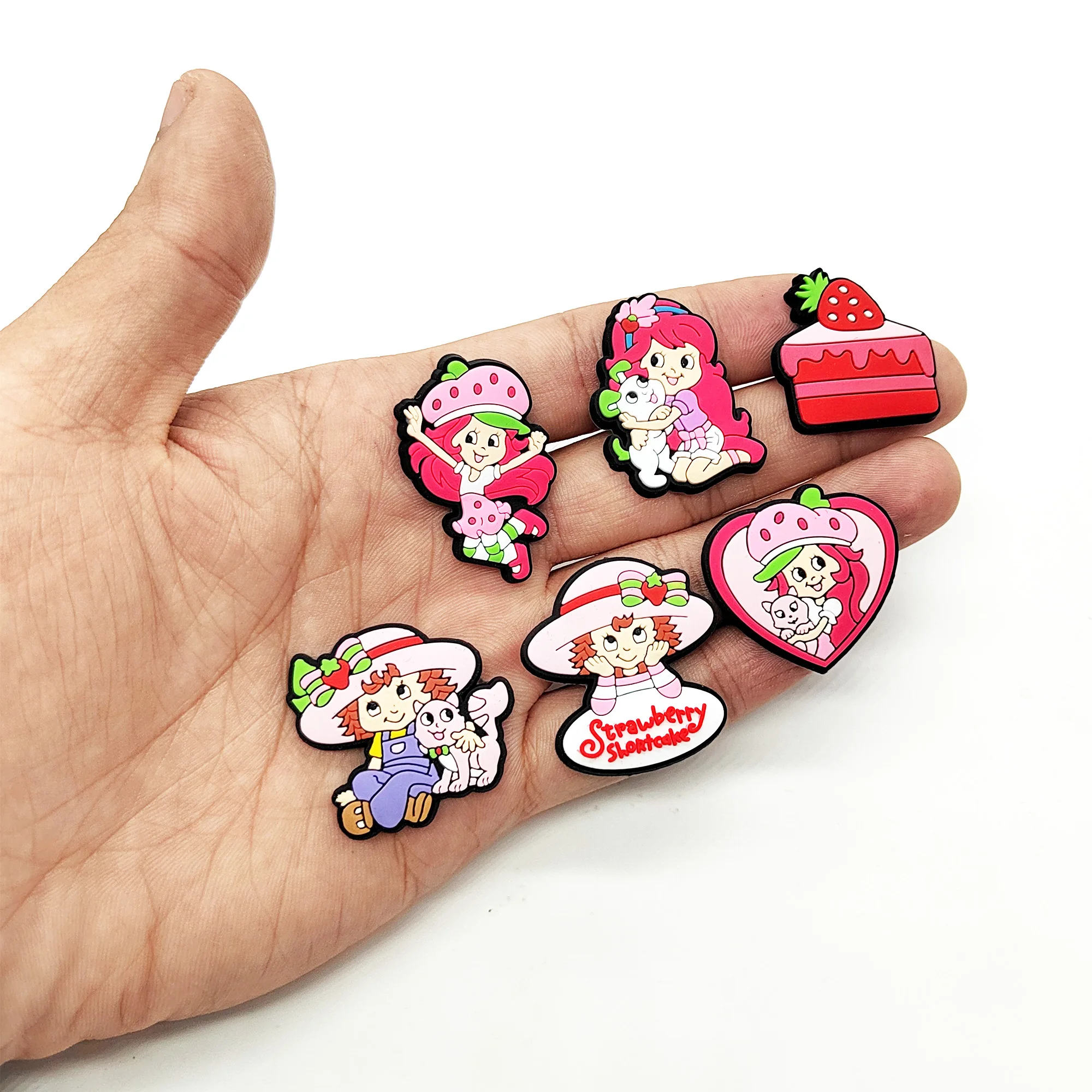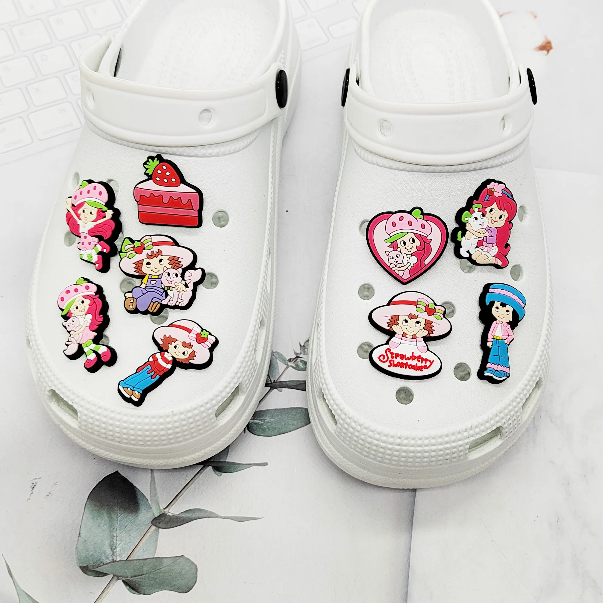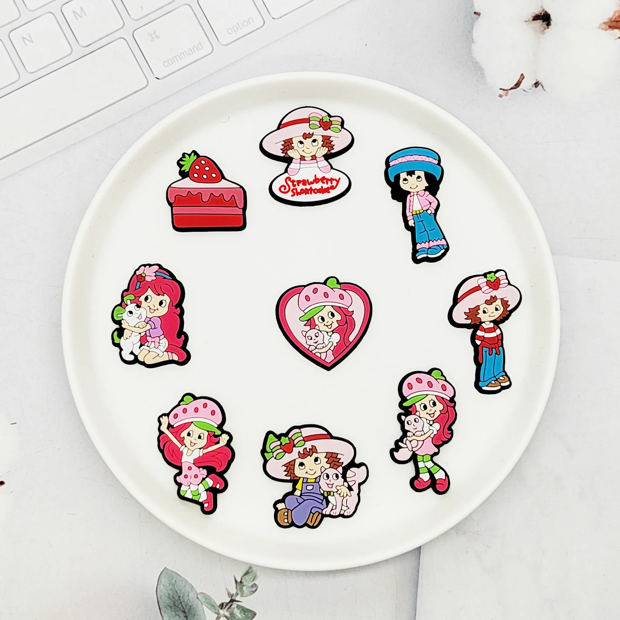 9pcs/set Cute Strawberry Girl Cartoon Series for Cartoon Shoe Charms Accessories DIY Decoration for Classic Clog Kids Gifts