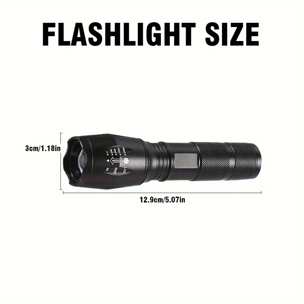 • Five Modes :The flashlight comes with five modes - full, dim, spot, zoom, and off, allowing you to adjust the light settings according to your requirements.