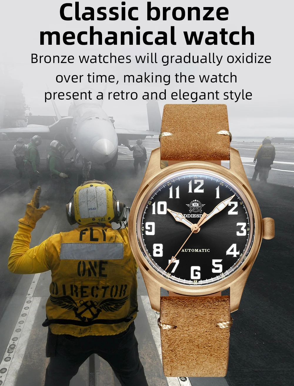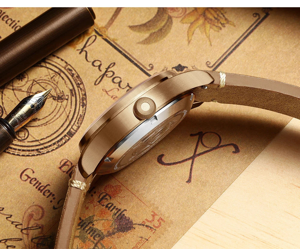 Watch features: Bronze watches have a unique color and texture in appearance. As time goes by, the bronze surface will gradually oxidize and form a unique patina, which makes the watch look retro and elegant. This change not only adds to the personality charm of the watch, but also makes it a work of art with collection value.