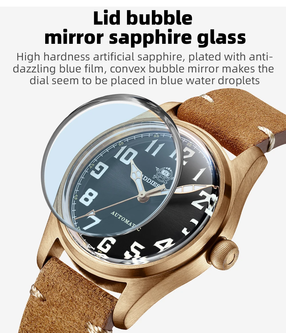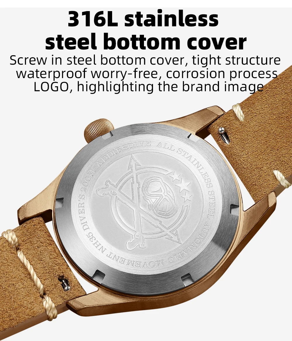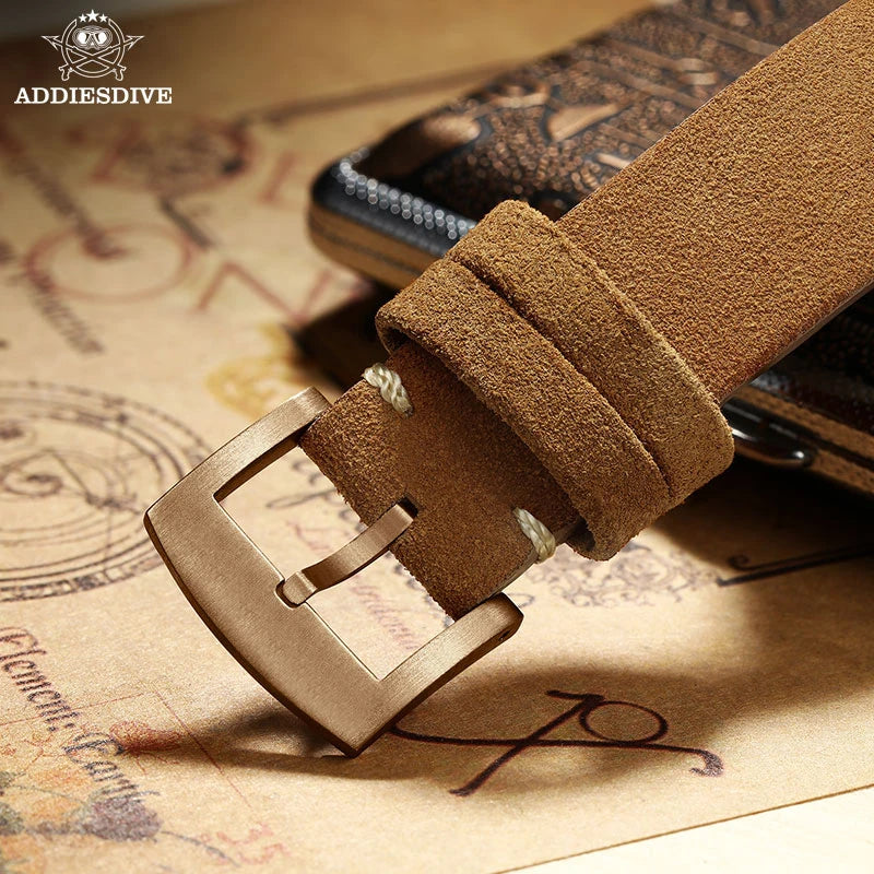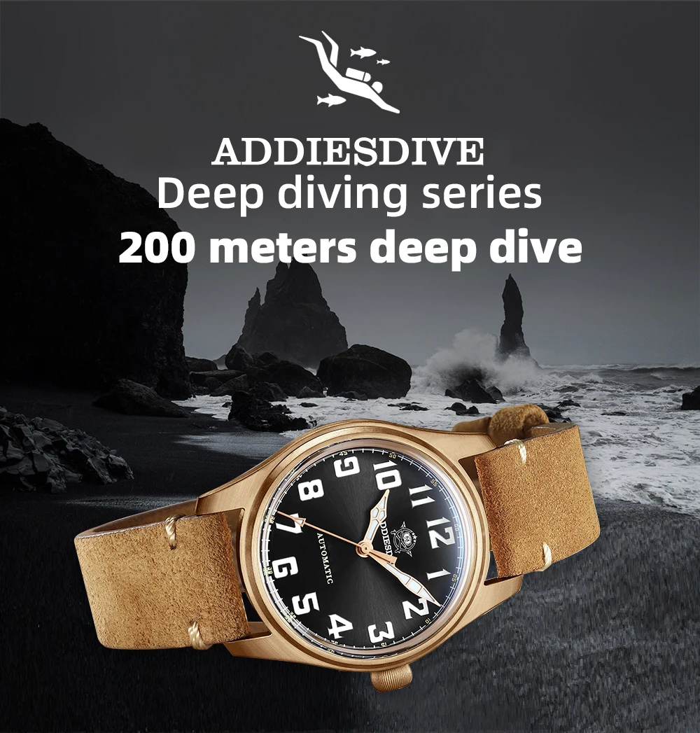 ADDIESDIVE 39mm Vintage CuSn8 Bronze Diver 200m Men's Watch Bubble mirror sapphire glass Automatic Mechanical Leather Strap