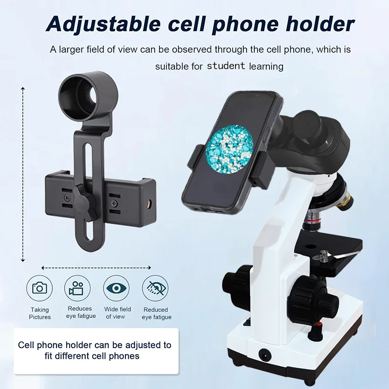 4.Phone Holder : The microscope kit adults kids features a phone holder for convenient viewing and capturing photos or videos.
