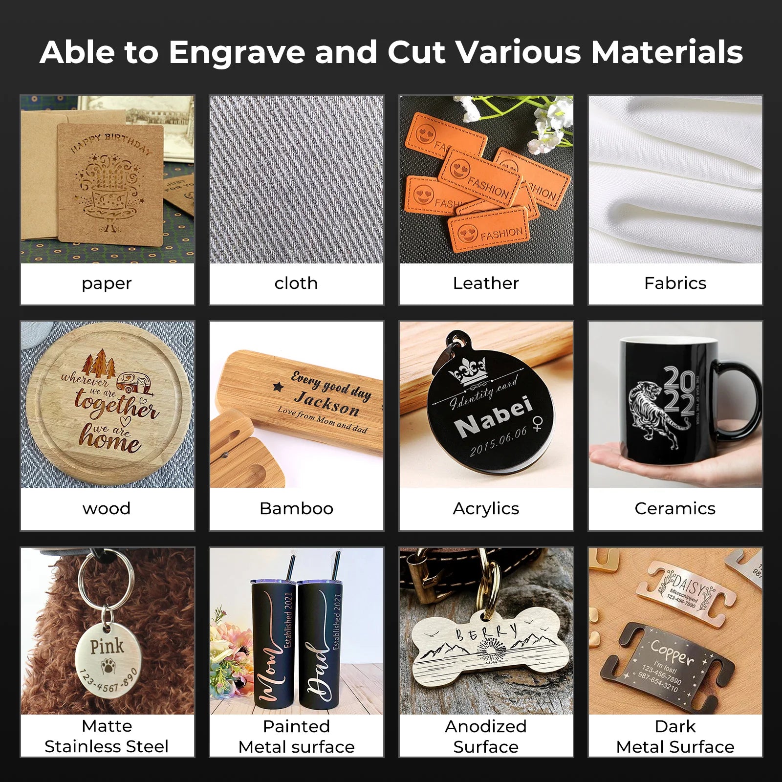 The newly upgraded 40W/80W power is strong, and the engraving speed is 6-7 times faster than traditional laser modules. The stainless steel engraving effect is better.