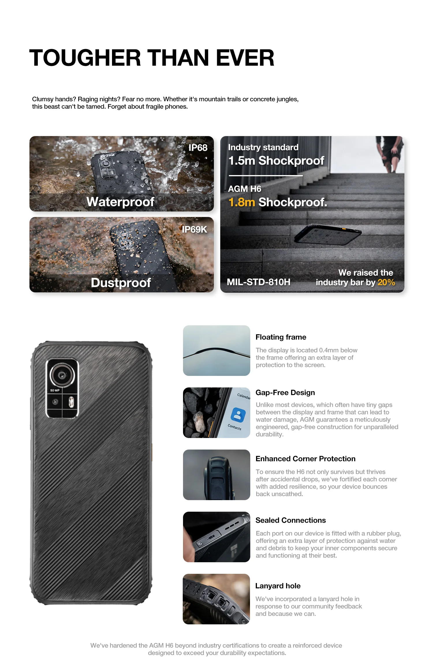 AGM H6 Lite Rugged Smartphone 8(4+4)G+128G 50MP Camera Waterproof Dropproof 6.56inch HD+ Display With NFC 4900mah