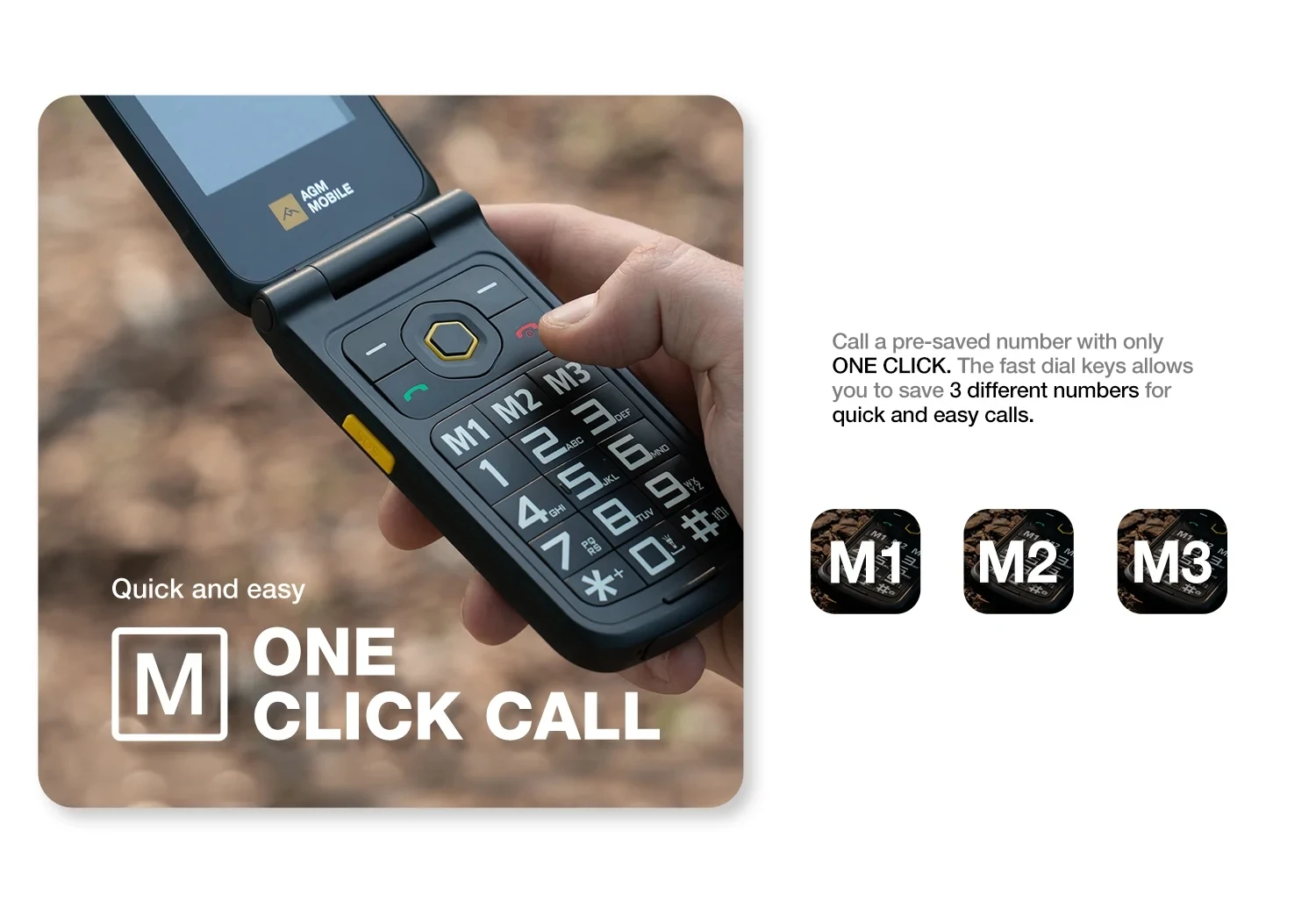 AGM M8 Flip Mobile Phone Unlocked Elderly Feature Phone SOS Quick Call English Russian Keyboard Rugged Cellphone