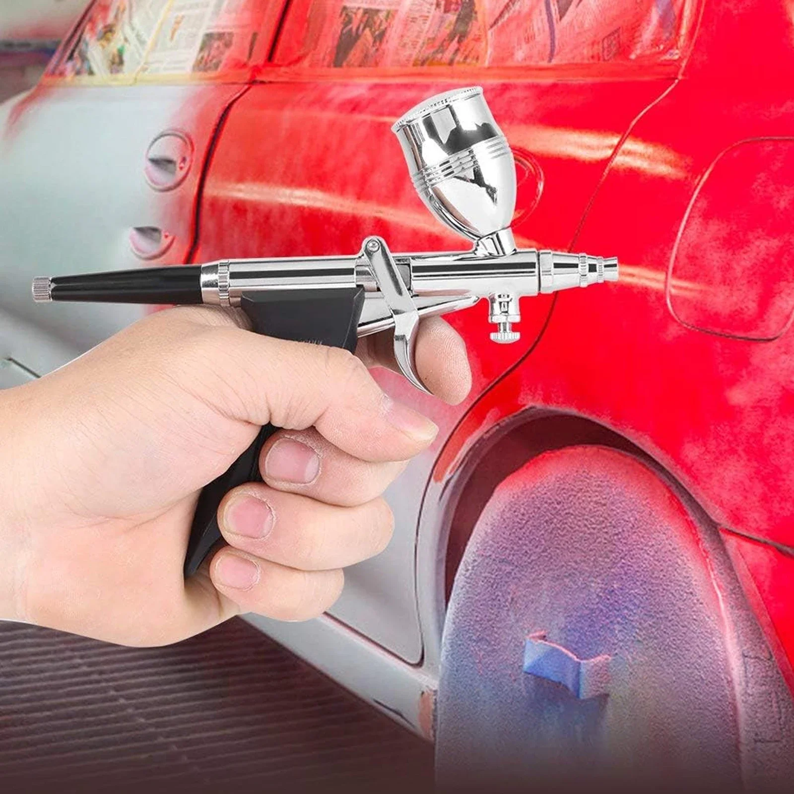 HANDY AND SIMPLE OPERATION: When using the airbrush gun, connecting all parts and fill fluid in the cup, just flipping the trigger to spray the effect you want. Adjusting screw on the tail of the airbrush can change the atomization size and set screw which is in front of the airbrush trigger can adjust the air outlet size