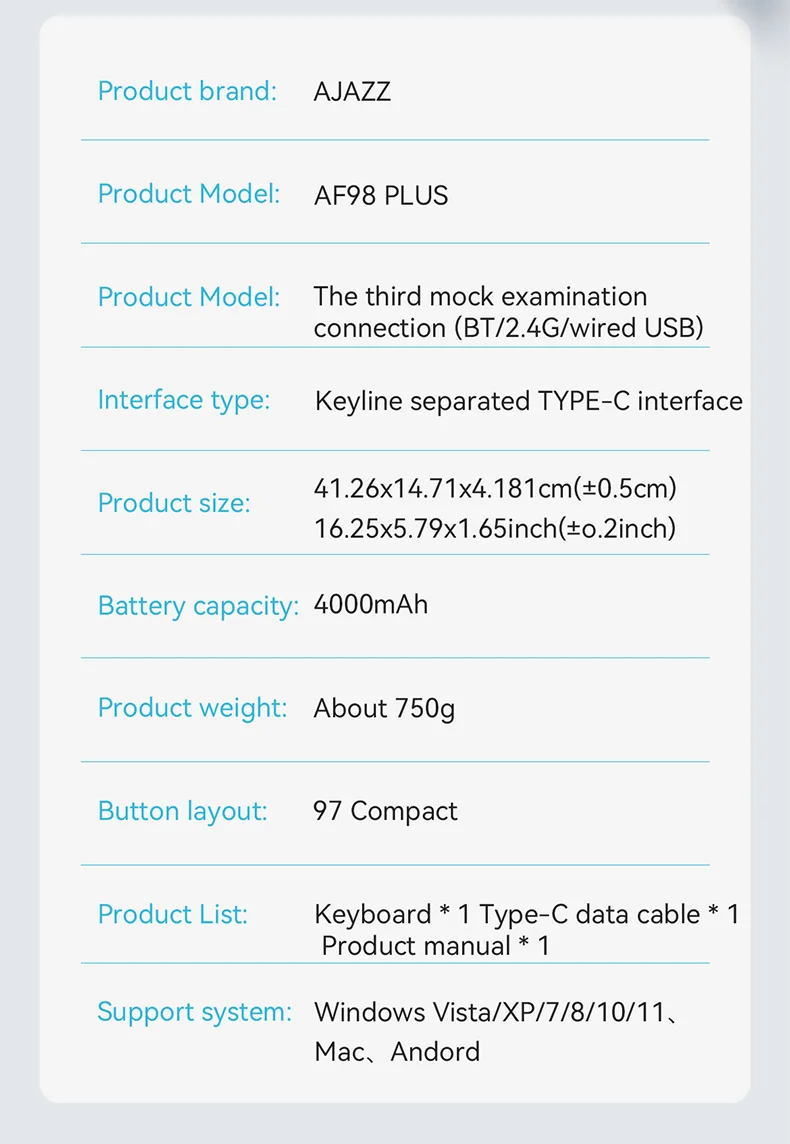 AJAZZ AF98 wireless\wired-film keyboard film keyboard feel 99-key desktop computer external office gaming game home typing
