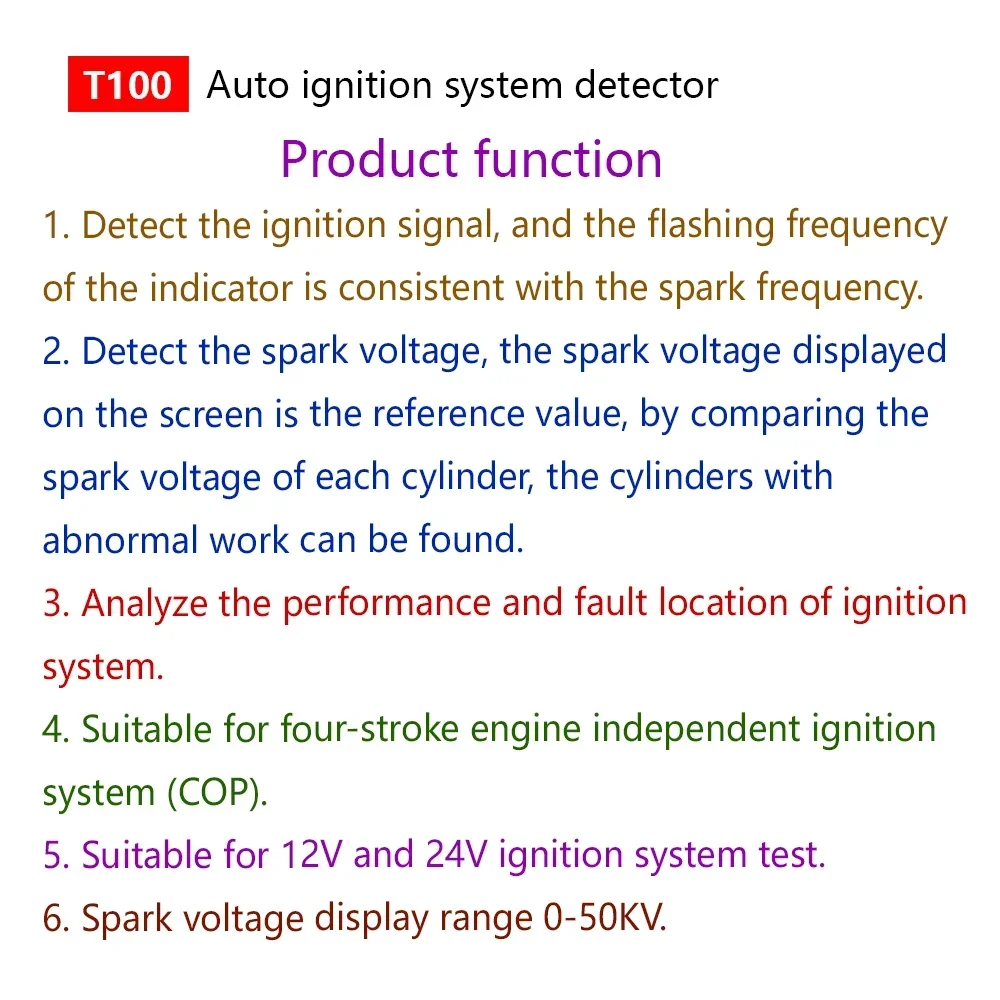 12V 24V Auto Ignition System Detector Ignition Signal and Spark Voltage Tester