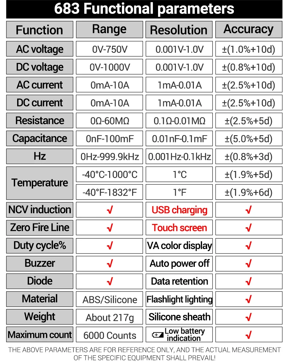 The meter is equipped with a high-capacity rechargeable batteries with full function and accurate measurement.The multimeter is an ideal tools for laboratory,factory,radio enthusiasts and household.
