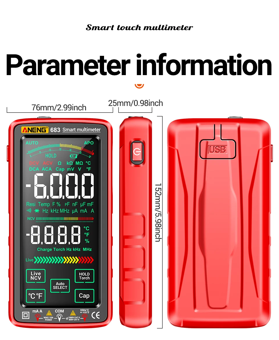ANENG 683 Smart Multimeter Tester Current Tool High-end Touch 6000 Counts Multimetro Test Rechargeable Multitester AC/DC Voltage