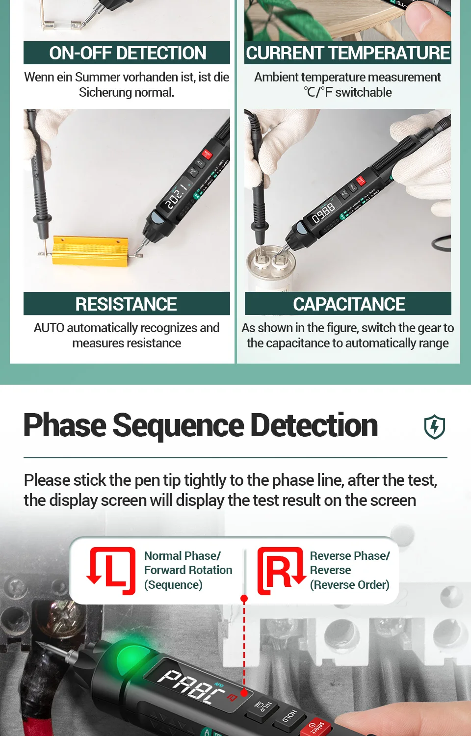 REASONS TO BUY:Sensor Pen Tester: The multimeter comes with a sensor pen tester, allowing for quick and efficient testing of electrical circuits.