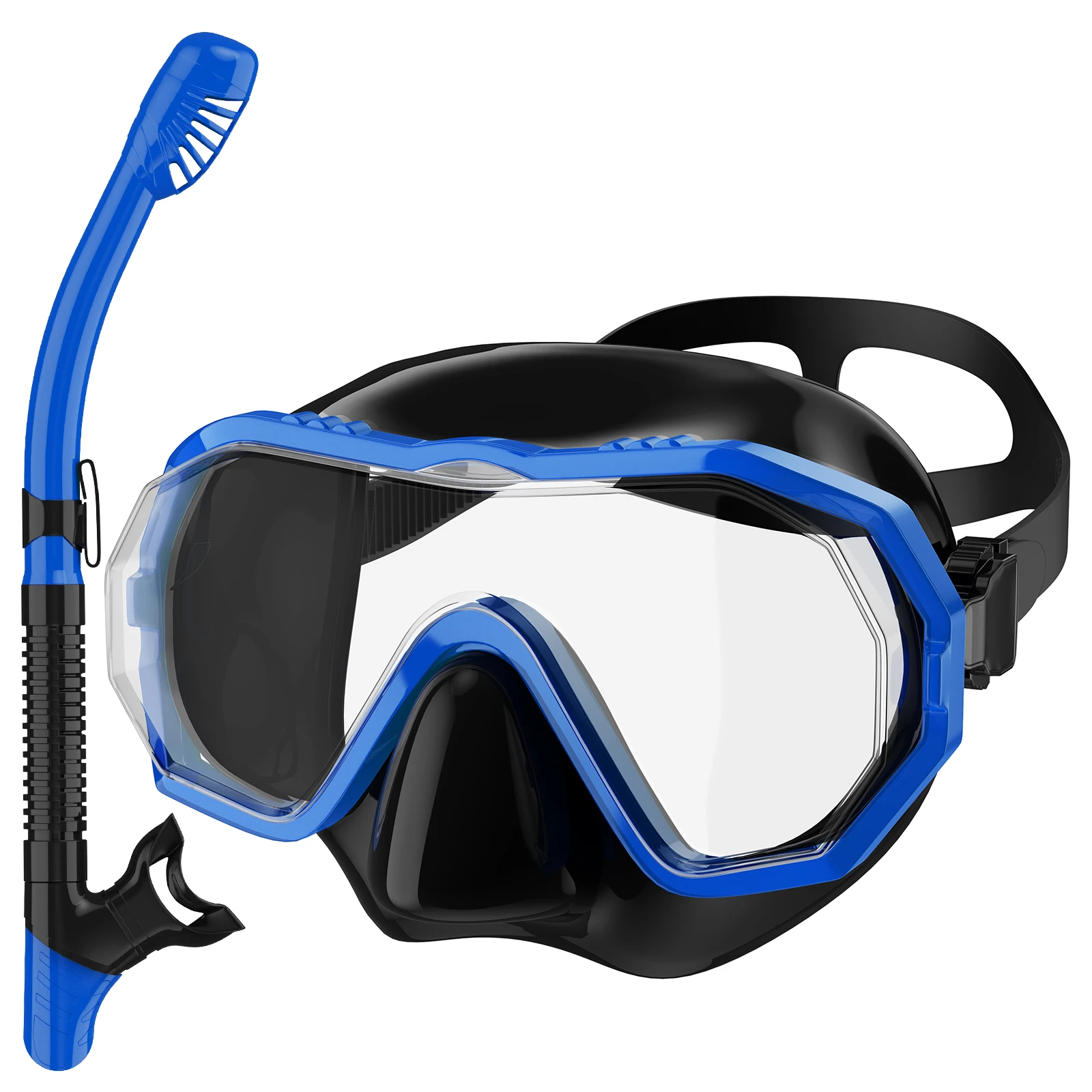 Anti-Fog Swimming Diving Goggles Underwater Snorkeling Snorkel Mask Water Sports Set HD Glass 180° View M2