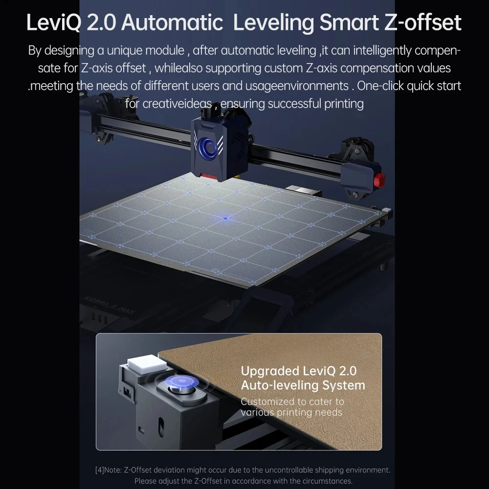 3.Fast and Precise Leveling:Brand new upgraded LeviQ 2.0 Automatic Leveling System in combination with tailored modular realize smart offset to the Z-axis without manual adjustment. Z-Offset can be customed to cater to various printing needs. One-click quick start for creative ideas, ensuring successful printing.