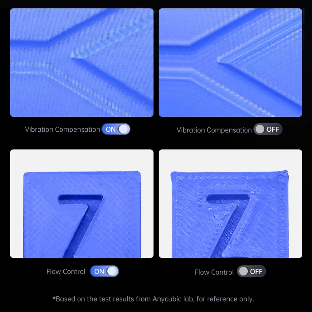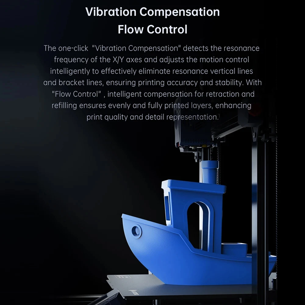 6.shake Compensation Function:The one-click to detect the resonance frequency of the X/Y axes and adjusts the motion control intelligently to effectively eliminate resonance vertical lines and bracket lines, ensuring printing accuracy and stability. With "Flow Control", intelligent compensation for retraction and refilling ensures evenly and fully printed layers, enhancing print quality and detail representation.