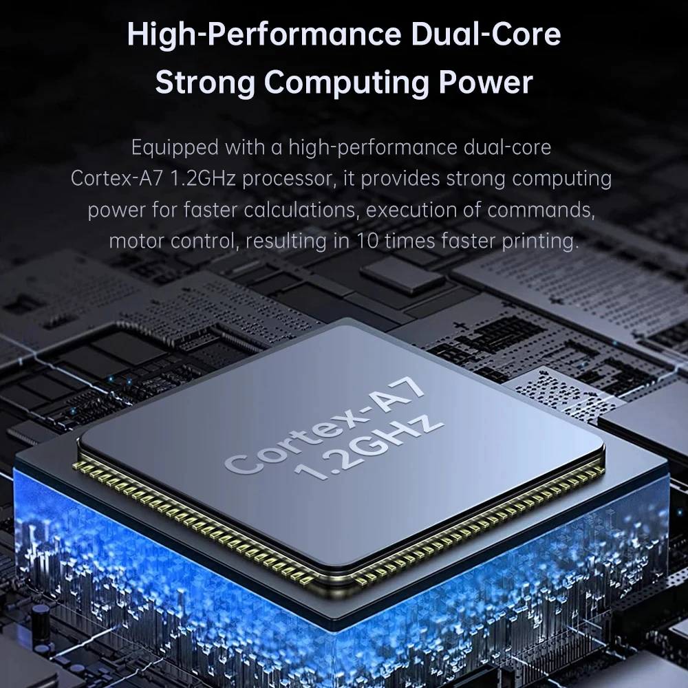 5.High-Performance Dual-Core:Equipped with a high-performance dual-core Cortex-A7 1.2GHz processor, it provides strong computing power for faster calculations, execution of commands, motor control, resulting in 10 times faster printing.