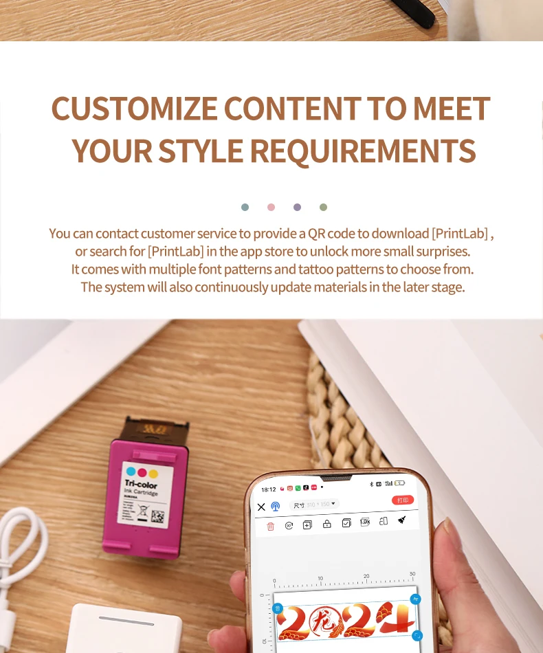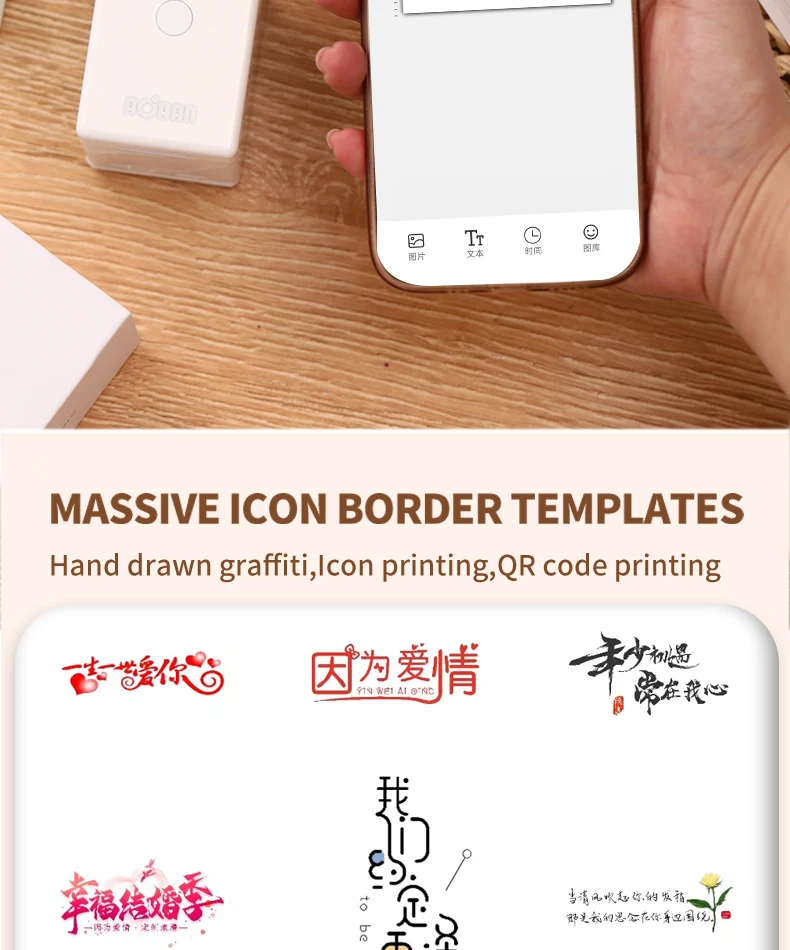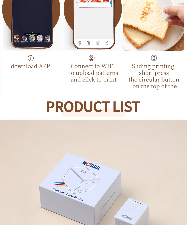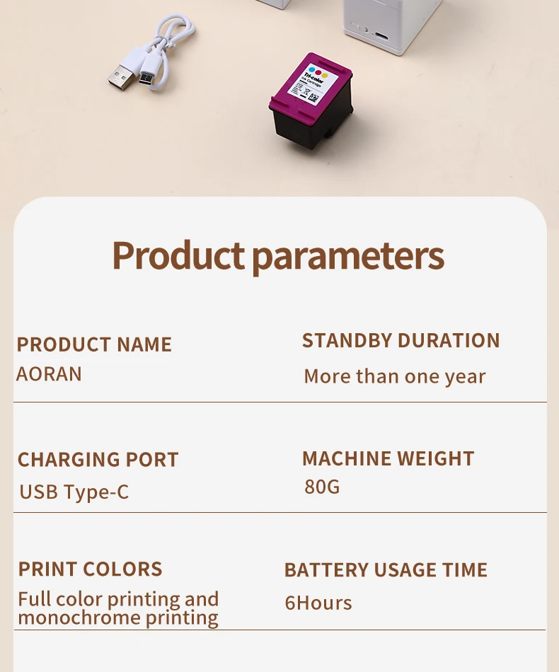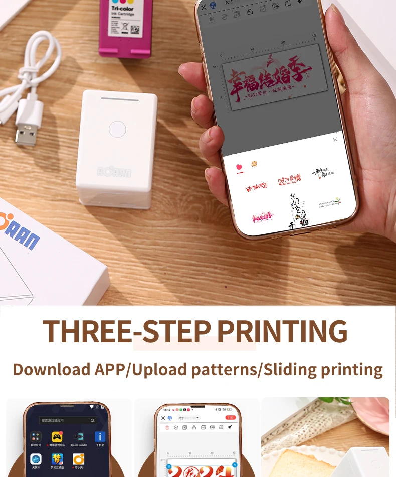 AORAN Mini Portable Color Printer Customized Text Smartphone Wireless Printing Inkjet Printer with Ink Cartridge #R10