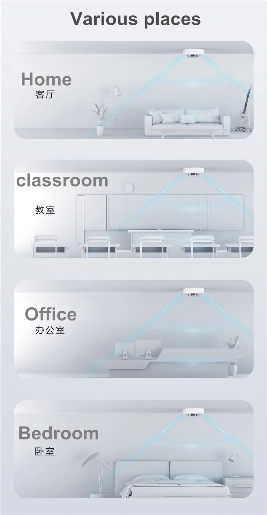 Alarm sound pressure: > 80dB (3m away from the alarm)
