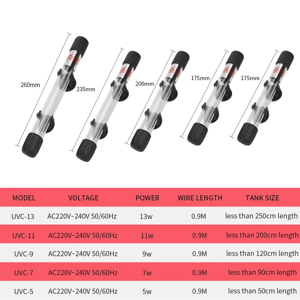 Aquarium UV Light Submersible Sterilization Lamp 5~11W For Fish Tank