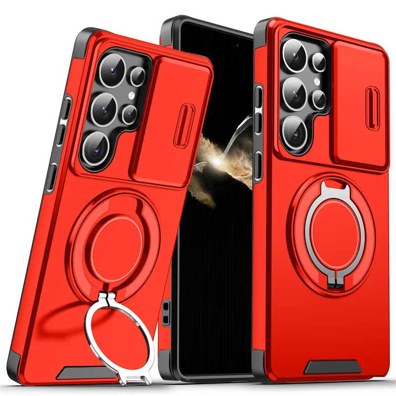 Armor Magnetic Ring Case for Samsung Galaxy S24 S23 Plus S21 S22 S25 Ultra S20 FE A54 A55 A16 A36 A56 A17 5G Lens Protect Cover