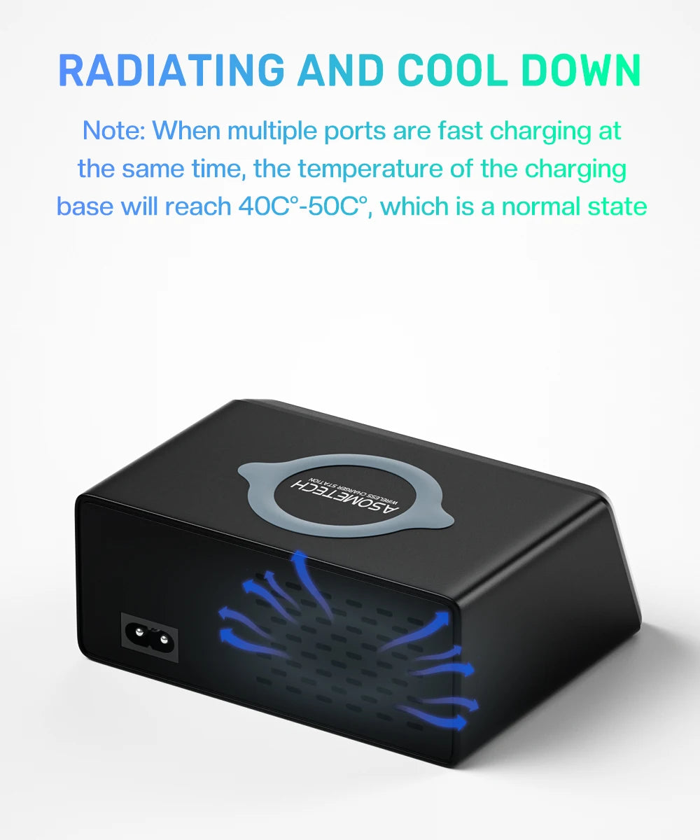 ASOMETECH 110W USB Type C Charger Wireless Charing Multi Ports Fast Phone Charger PD QC3.0 Quick Charge For iPhone 14 13 Xiaomi