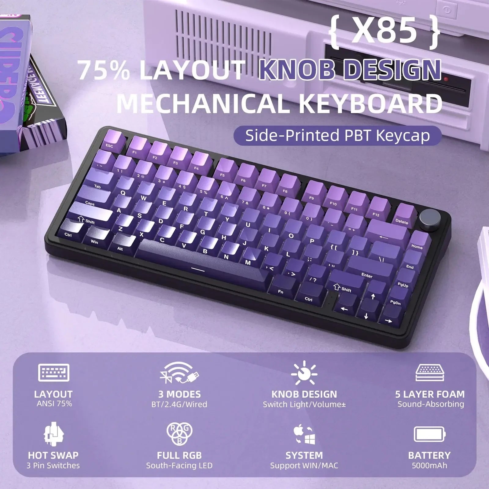 [3] Boasting full-key hot-swap capability, the X85 makes it easy to switch out individual switches without soldering, enabling users to tailor the keyboard to their preferred typing and gaming feel.