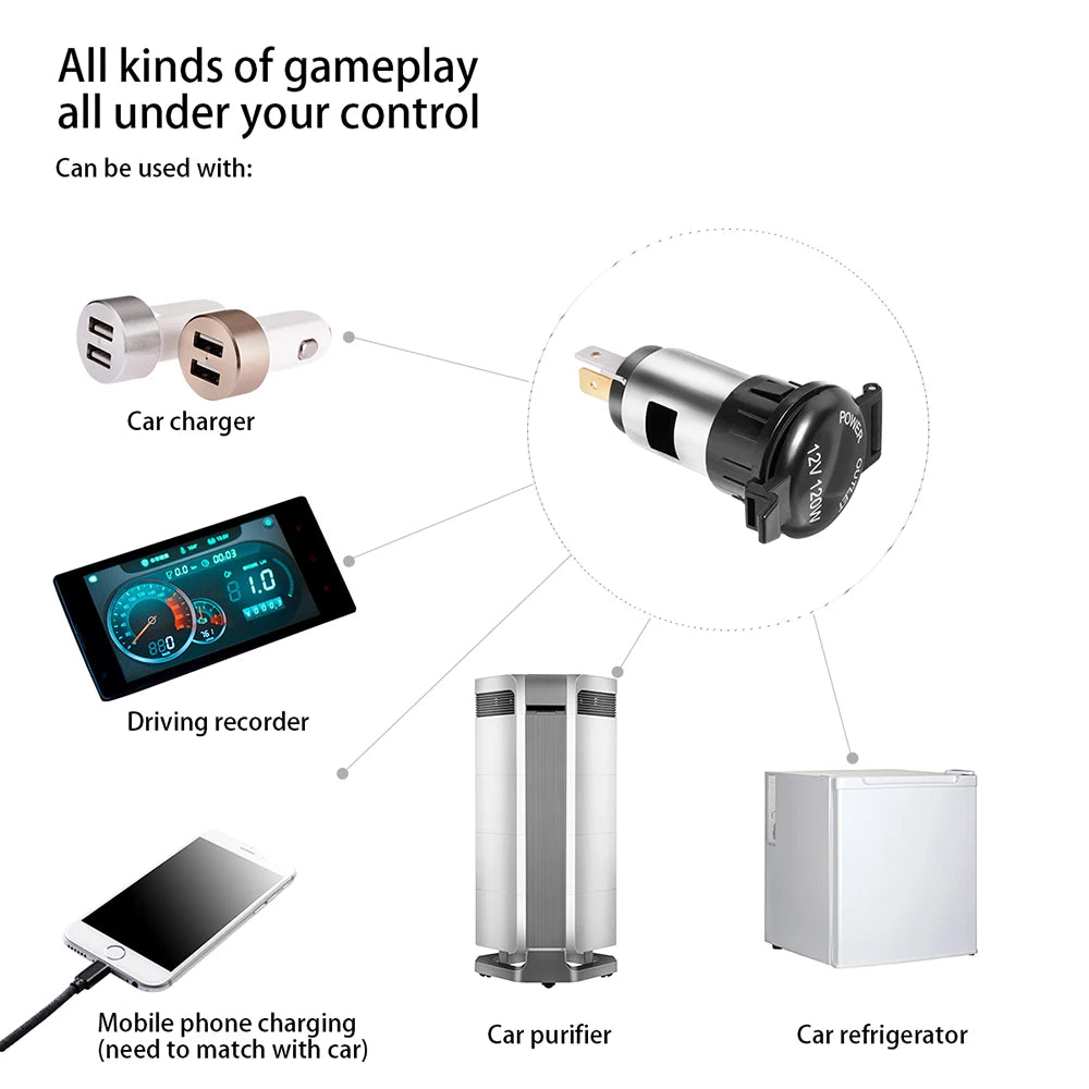 Packaging includes: 1 motorcycle cigarette lighter socket