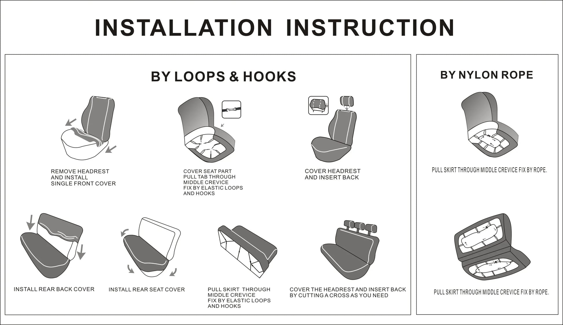 2. Universal Fitment - Elastic webbing, flexible straps, and steel hooks make this seat cover fit most cars, SUVs, trucks, and vans.