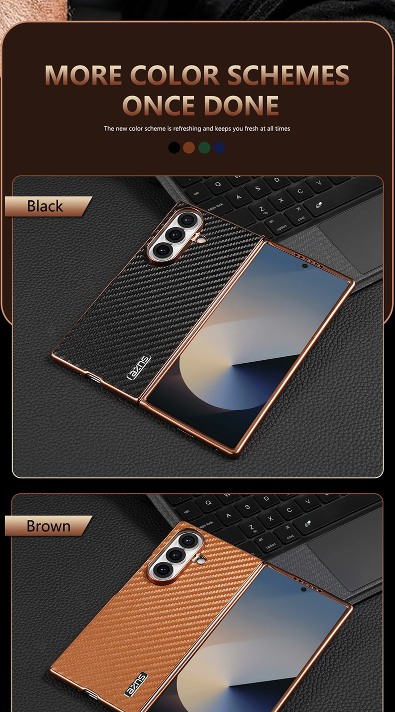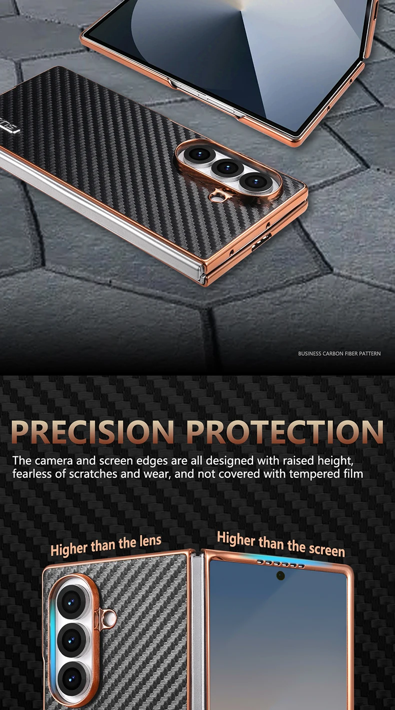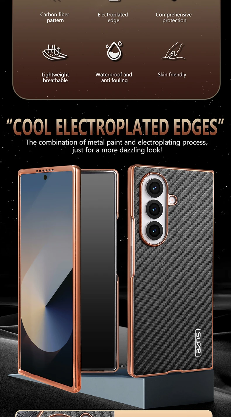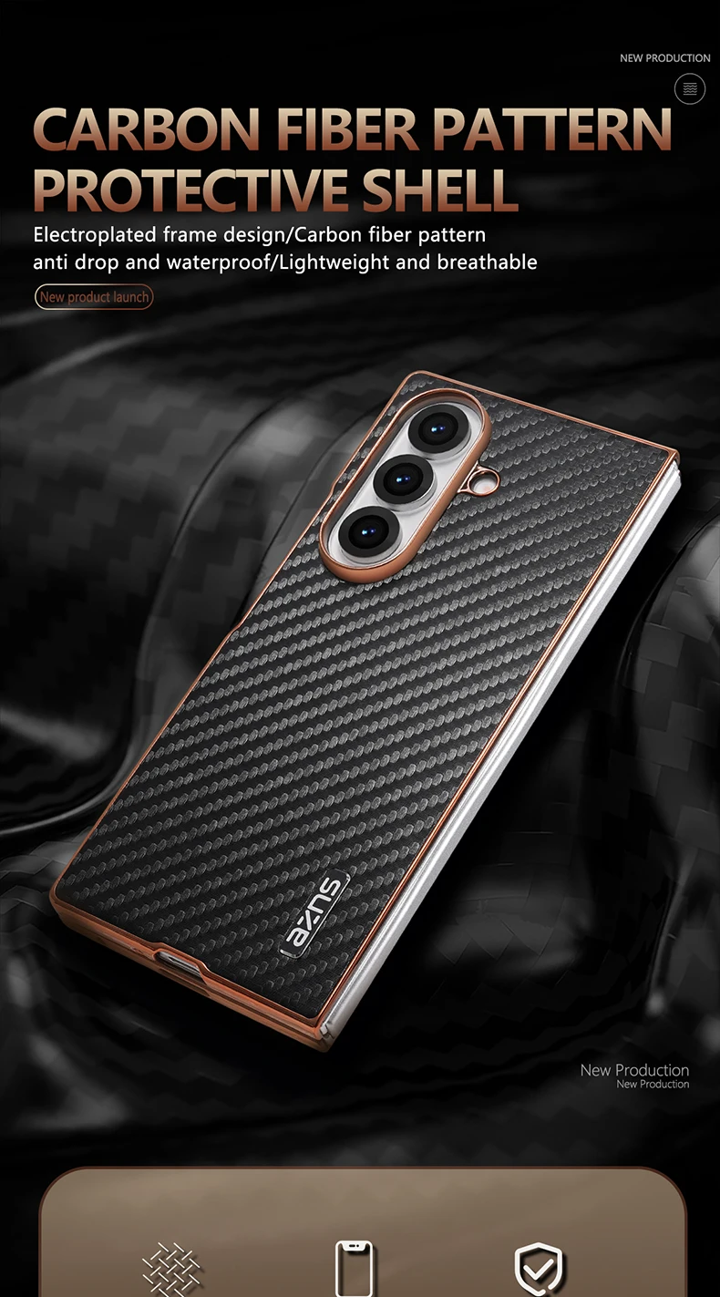 AZNS Luxury Plating Carbon Fiber Pattern Case for Galaxy Z Fold 7 Fold 6 Fold 5 Fold 4 Z Fold 3 Electroplated Protective Cover