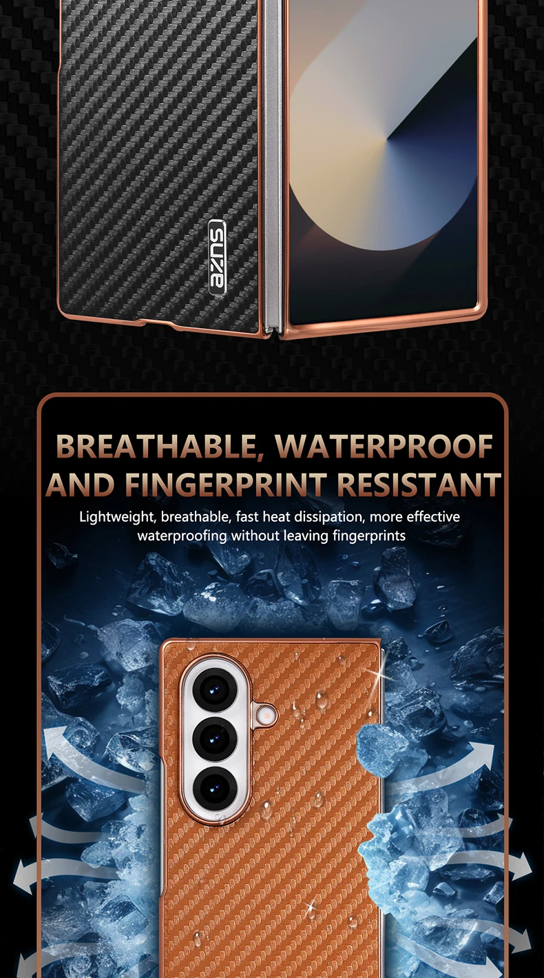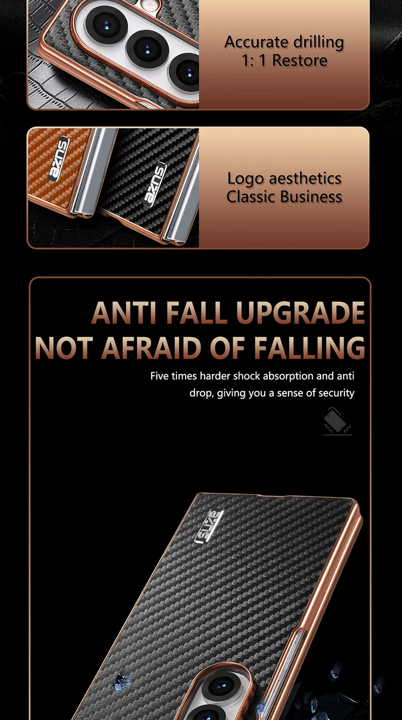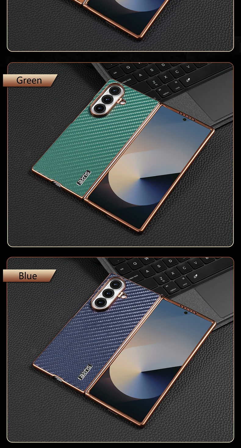 AZNS Luxury Plating Carbon Fiber Pattern Case for Galaxy Z Fold 7 Fold 6 Fold 5 Fold 4 Z Fold 3 Electroplated Protective Cover