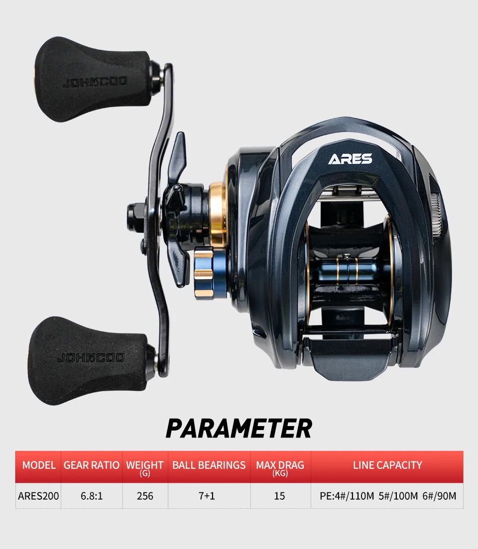 Baitcasting Reel Metal Body 15KG Max Drag 7+1 Bearings Aluminum Frame Freshwater Saltwater Fishing Reel
