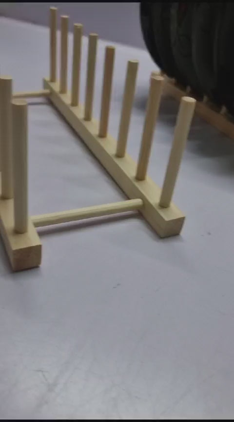 - Easy to Install: Unassembled, this drying rack comes with 4 pieces parts, the two long racks and two pegs, each rack have two holes. 18 vertical bamboo pegs (9 on either side) create 8 slots for plates or pot lids, the two long racks and two pegs, each rack have two holes. When install, twist the pegs into side racks with a little big pressure, then the whole rack will be tight.