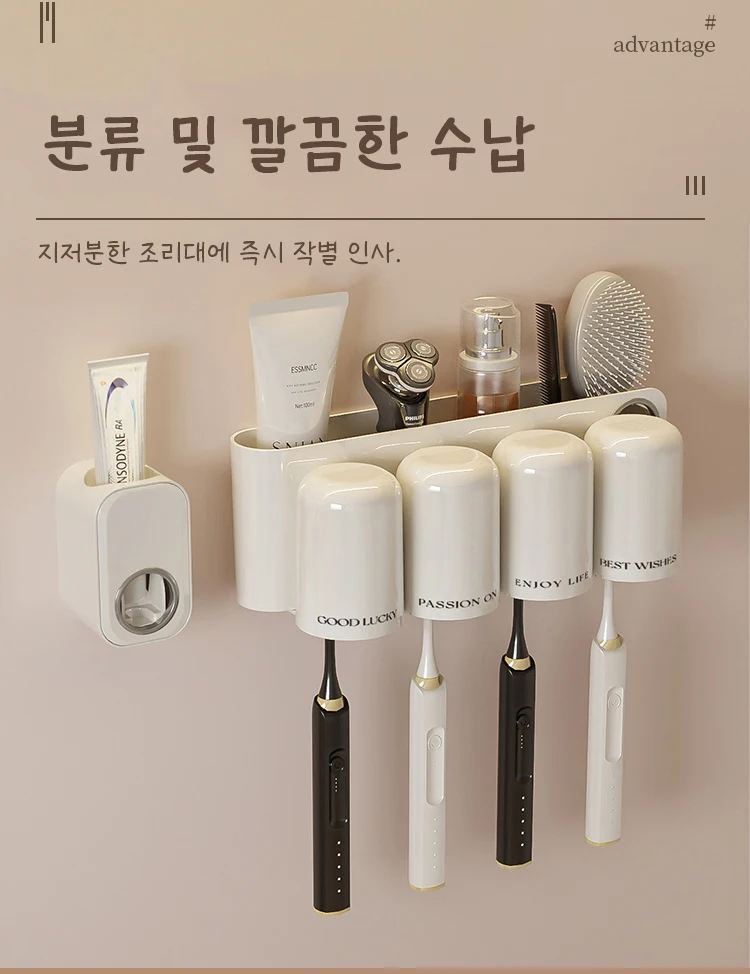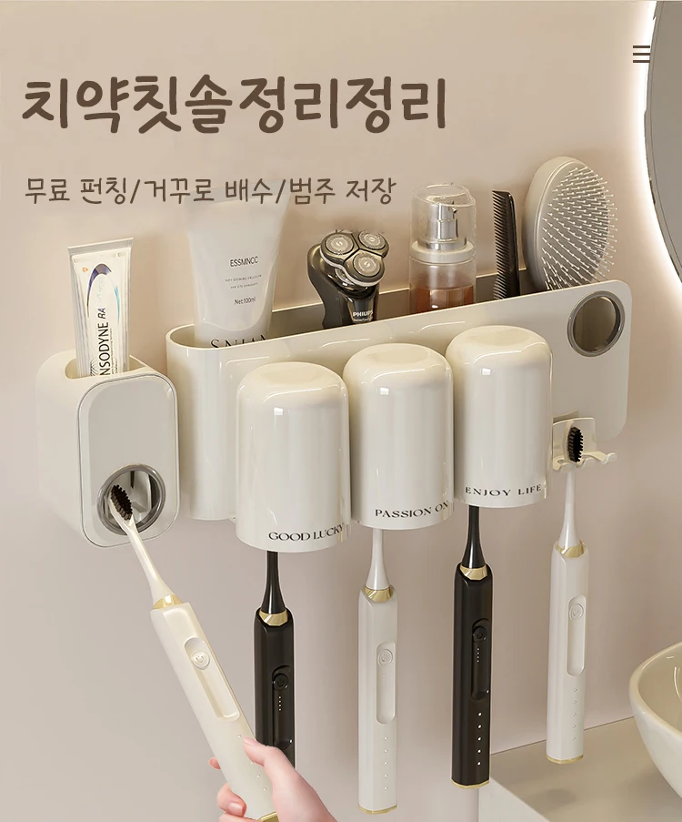 Bathroom Toothbrush Shelf Toiletry Set Storage Automatic Toothpaste Squeezer Wall Mount Toothbrush Holder with No Punch