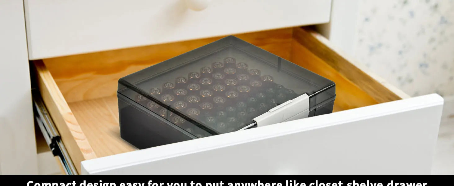 Compact & Portable Battery Holder: Small battery organizer container with strong latch for easy to opening and closing. Top handle provide convenience for carrying, hanging. Compact design easy for you to put anywhere like closet, shelve.drawer. Good choose for your friend and family